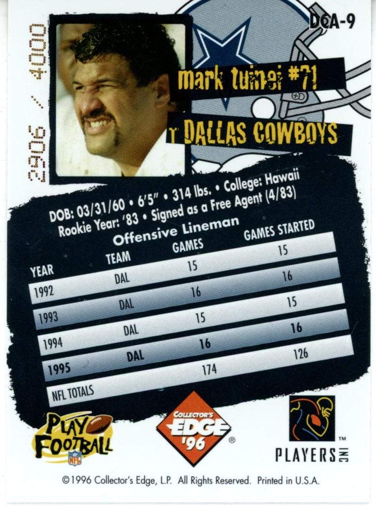 Mark Tuinei Autographed Dallas Cowboys 1996 Collector’s Edge #DCA-9 Card 55973