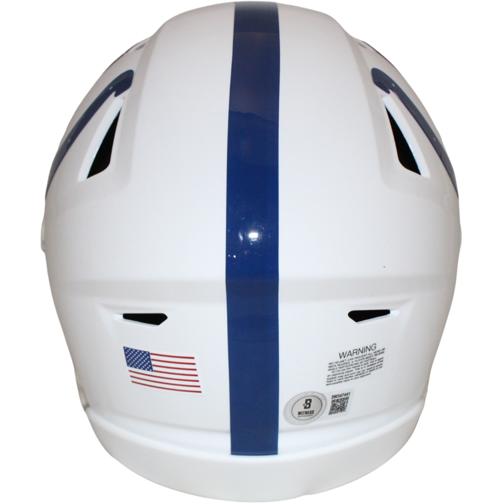 The number in the listing title is just an inventory sku for our records and is not the authentication number. The item pictured is a stock photo. There are multiple quanities of this item. Each of these items is unique because they are individually hand-signed. While the photographs accurately represent the item itself, please note that the signature’s size, exact placement, and strength may differ on the one you receive. This is an Indianapolis Colts Midi Helmet that was personally autographed by Marshall Faulk. Includes a certificate of authenticity / hologram from Beckett Authentication Services (BAS) and Denver Autographs. This is a BAS Witnessed Protection Program item which means a Beckett Authentication Service representative was present when this item was being signed. FREE SHIPPING within the USA on orders over $99!