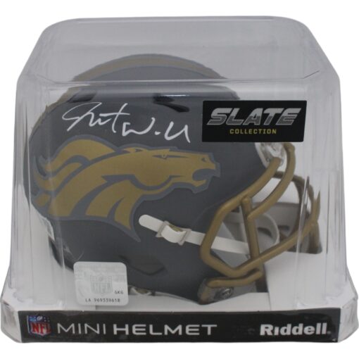 The number in the listing title is just an inventory sku for our records and is not the authentication number. The item pictured is a stock photo unless otherwise noted. This is a Denver Broncos Slate Mini Helmet that was personally autographed by Javonte Williams. Includes a certificate of authenticity from Beckett Authentication Services (BAS) and Denver Autographs.