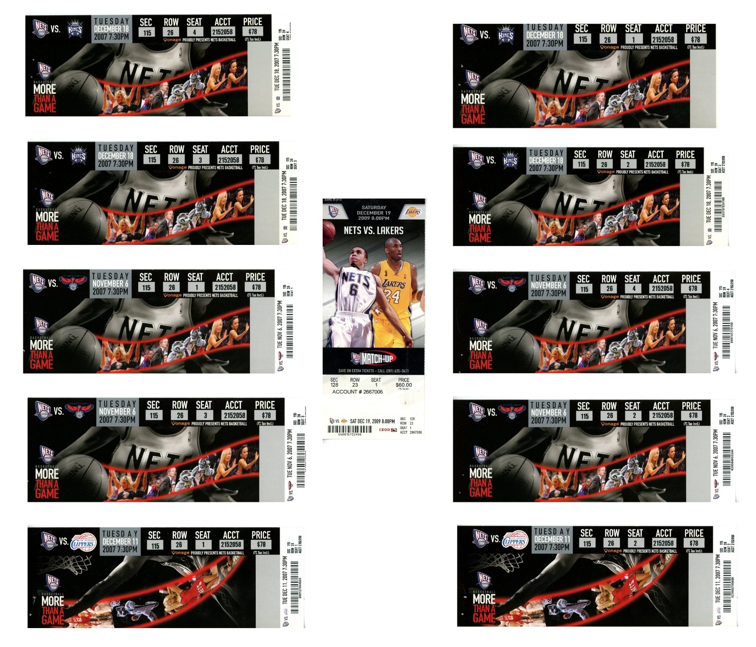 New Jersey Nets 11 quantity Ticket Lot 2007 & 2009 NBA Seasons 55542
