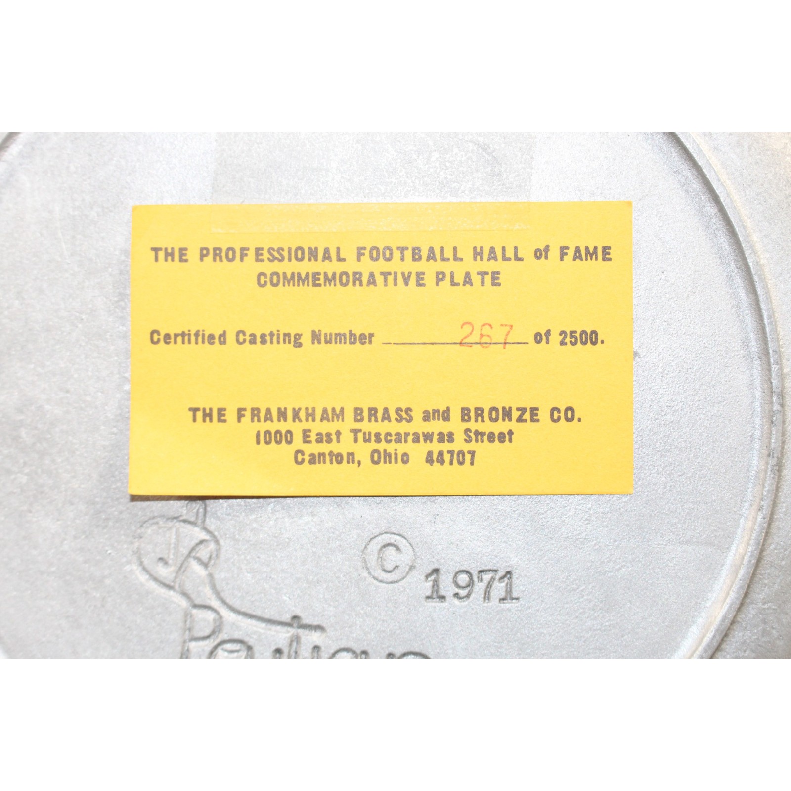 The number in the listing title is just an inventory sku for our records and is not the authentication number. This is a NFL Hall of Fame 10.5″ Commemorative Collector Pewter Plate Dish. FREE SHIPPING within the USA on orders over $99!