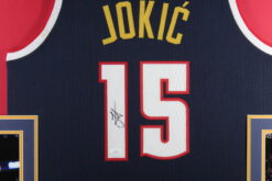Nikola Jokic Autographed Pro Style Navy XL Framed Jersey 35×43 JSA 53752