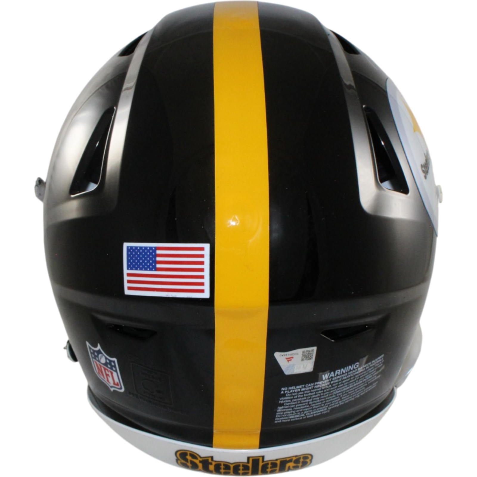 The number in the listing title is just an inventory sku for our records and is not the authentication number. The item pictured is the exact item you will receive, please see photos for condition. This is a Pittsburgh Steelers Full Size Authentic SpeedFlex Helmet that was personally autographed by Pat Freirmuth. Includes a certificate of authenticity / hologram from Fanatics Authentic (FAN) and Denver Autographs. FREE SHIPPING within the USA on orders over $99!