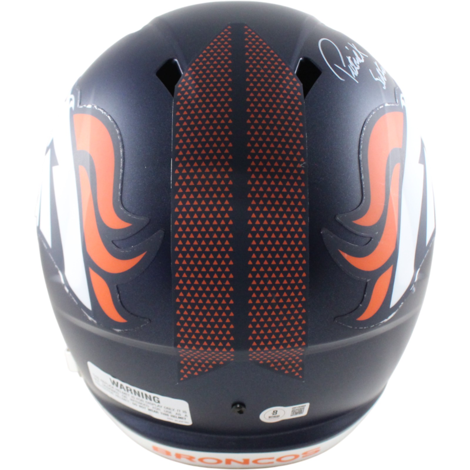 The number in the listing title is just an inventory sku for our records and is not the authentication number. The item pictured is a stock photo. There are multiple quanities of this item. Each of these items is unique because they are individually hand-signed. While the photographs accurately represent the item itself, please note that the signature’s size, exact placement, and strength may differ on the one you receive. This is a Denver Broncos Full Size Replica Helmet that was personally autographed by Patrick Surtain. Includes a certificate of authenticity / hologram from Beckett Authentication Services (BAS) and Denver Autographs. This is a BAS Witnessed Protection Program item which means a Beckett Authentication Service representative was present when this item was being signed. FREE SHIPPING within the USA on orders over $99!