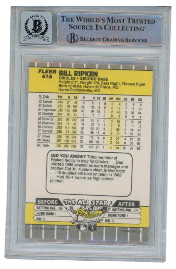 Billy Ripken Autographed 1989 Fleer #616 Error Card 10 Grade Beckett 52501