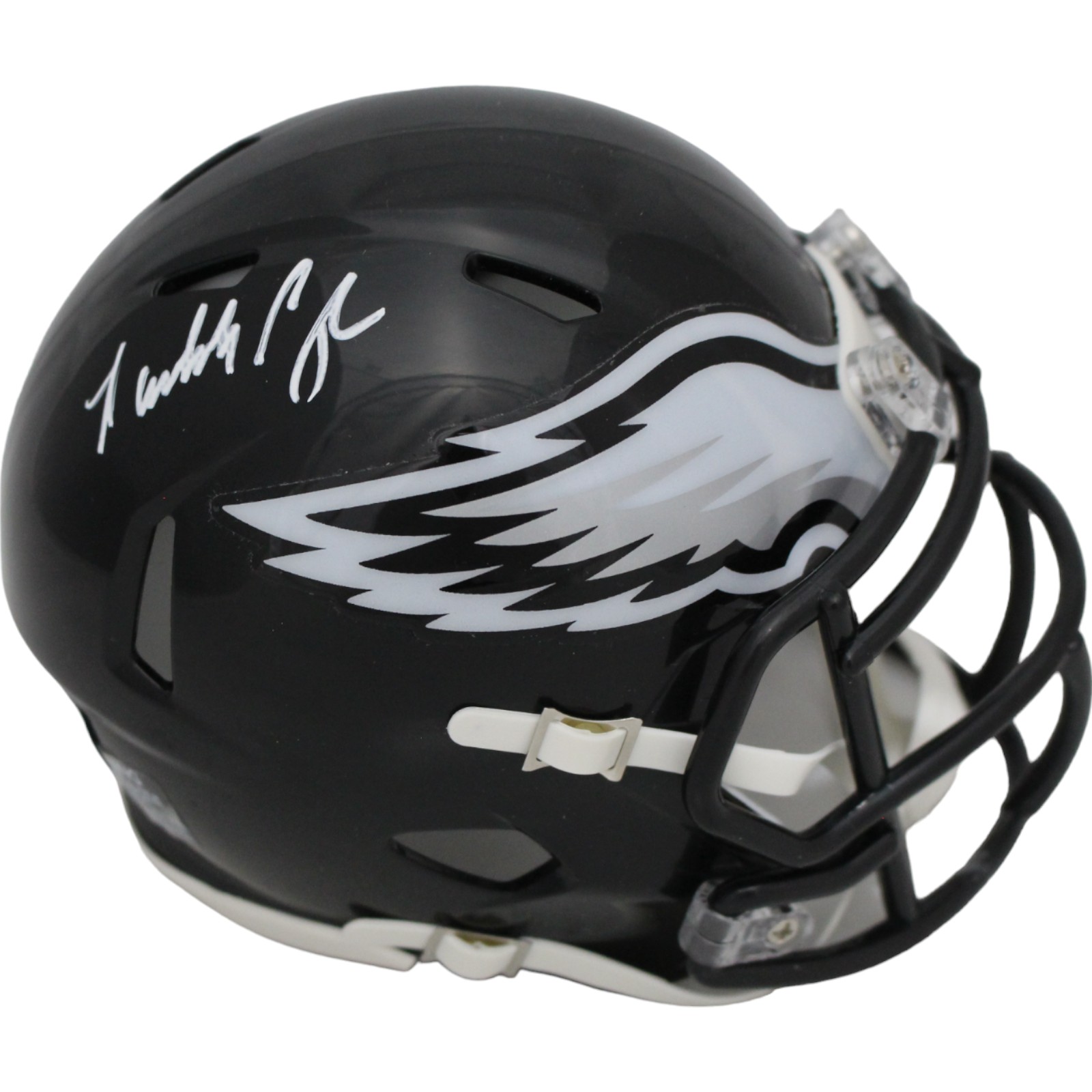 This is a Philadelphia Eagles Slate Mini Helmet that was personally autographed by Randall Cunningham. Includes a certificate of authenticity from Beckett Authentication Services (BAS) and Denver Autographs.