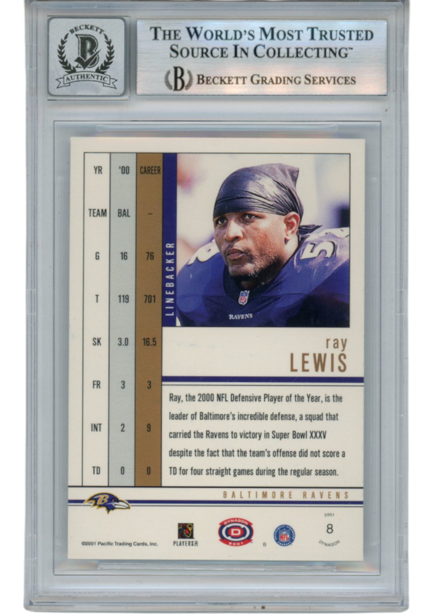 Ray Lewis Autographed 2001 Pacific Dynagon #8 Trading Card Beckett 53050