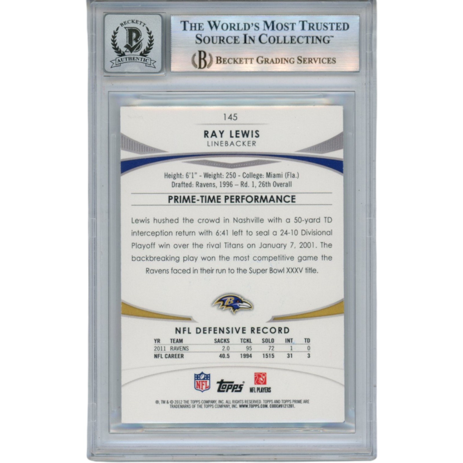 Ray Lewis Autographed 2023 Topps Resurgence #66 Trading Card Beckett 52990