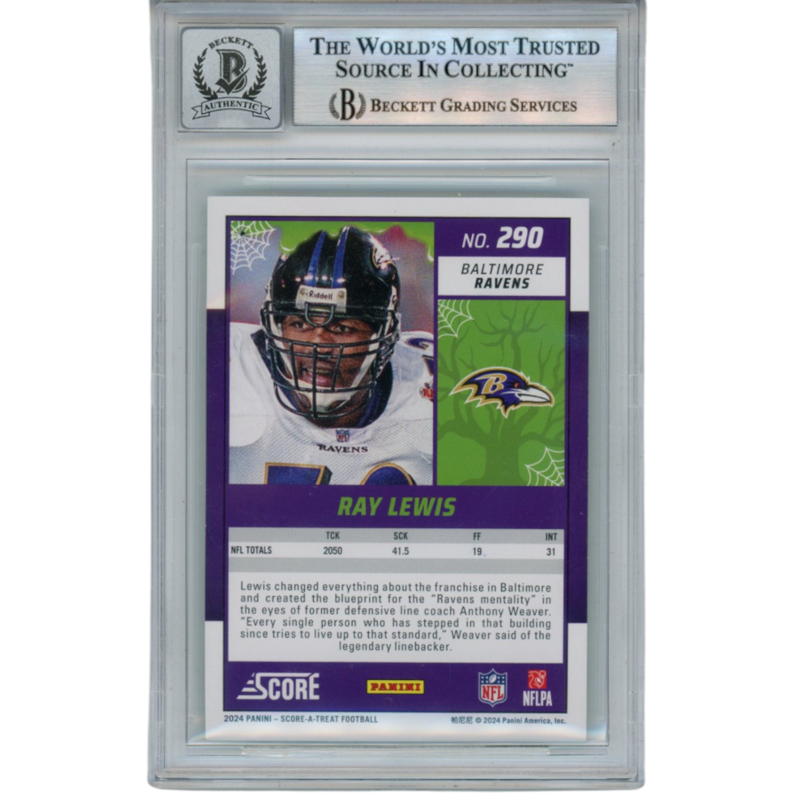 Ray Lewis Autographed 24 Score Halloween Bats #290 Trading Card Beckett 53061