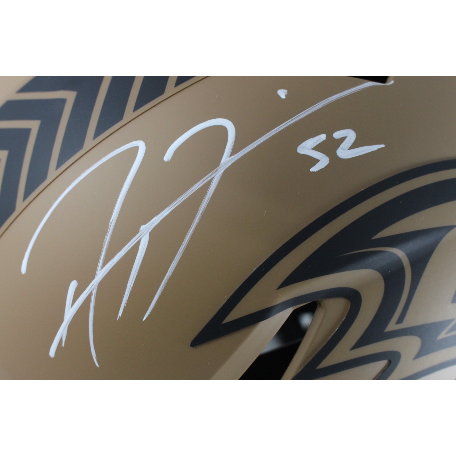 This is a Baltimore Ravens Full Size Authentic 2023 Salute to Service Helmet that was personally autographed by Ray Lewis. Includes a certificate of authenticity from Beckett Authentication Services (BAS) and Denver Autographs.