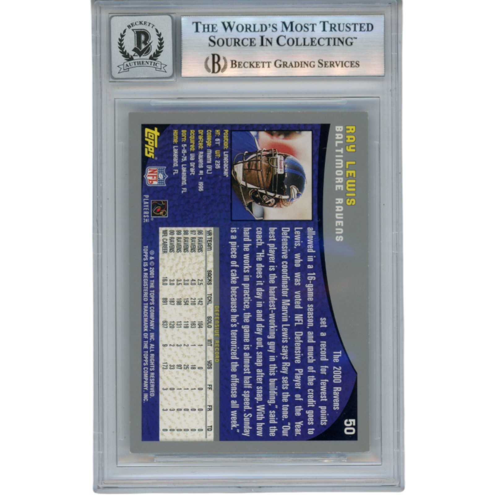 Ray Lewis Autographed/Signed 2001 Topps #50 Trading Card Beckett 52936