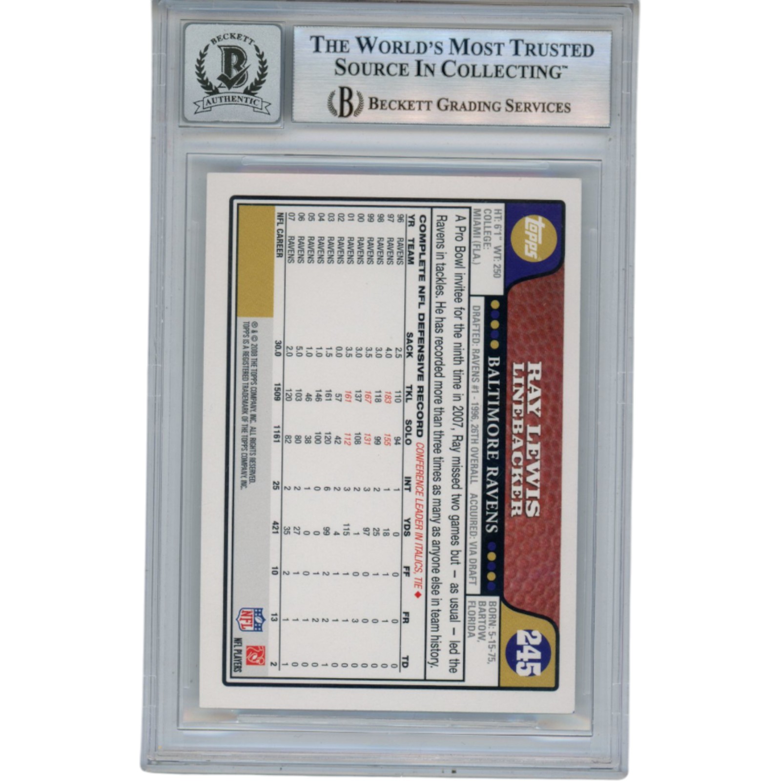 Ray Lewis Autographed/Signed 2008 Topps #245 Trading Card Beckett 52941