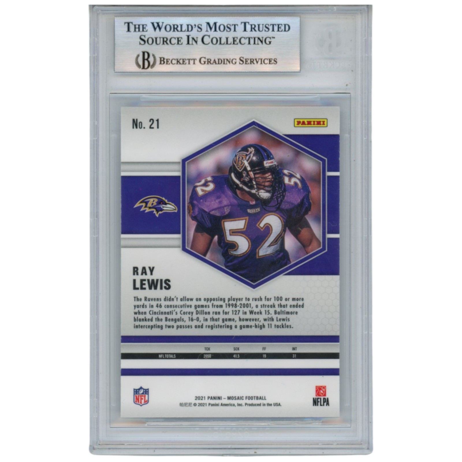 Ray Lewis Autographed/Signed 2021 Mosiac #21 Trading Card Beckett 52916