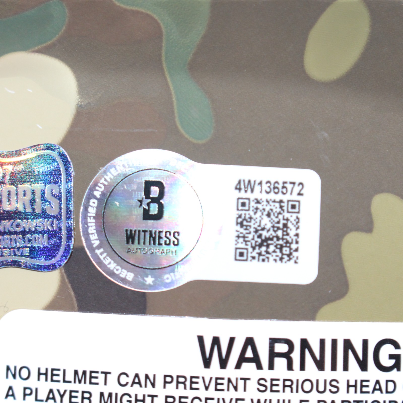 The number in the listing title is just an inventory sku for our records and is not the authentication number. The item pictured is a stock photo. There are multiple quanities of this item. Each of these items is unique because they are individually hand-signed. While the photographs accurately represent the item itself, please note that the signature’s size, exact placement, and strength may differ on the one you receive. This is a New England Patriots Full Size Authentic Camo Helmet that was personally autographed by Rob Gronkowski. Includes a certificate of authenticity / hologram from Beckett Authentication Services (BAS) and Denver Autographs. This is a BAS Witnessed Protection Program item which means a Beckett Authentication Service representative was present when this item was being signed. FREE SHIPPING within the USA on orders over $99!