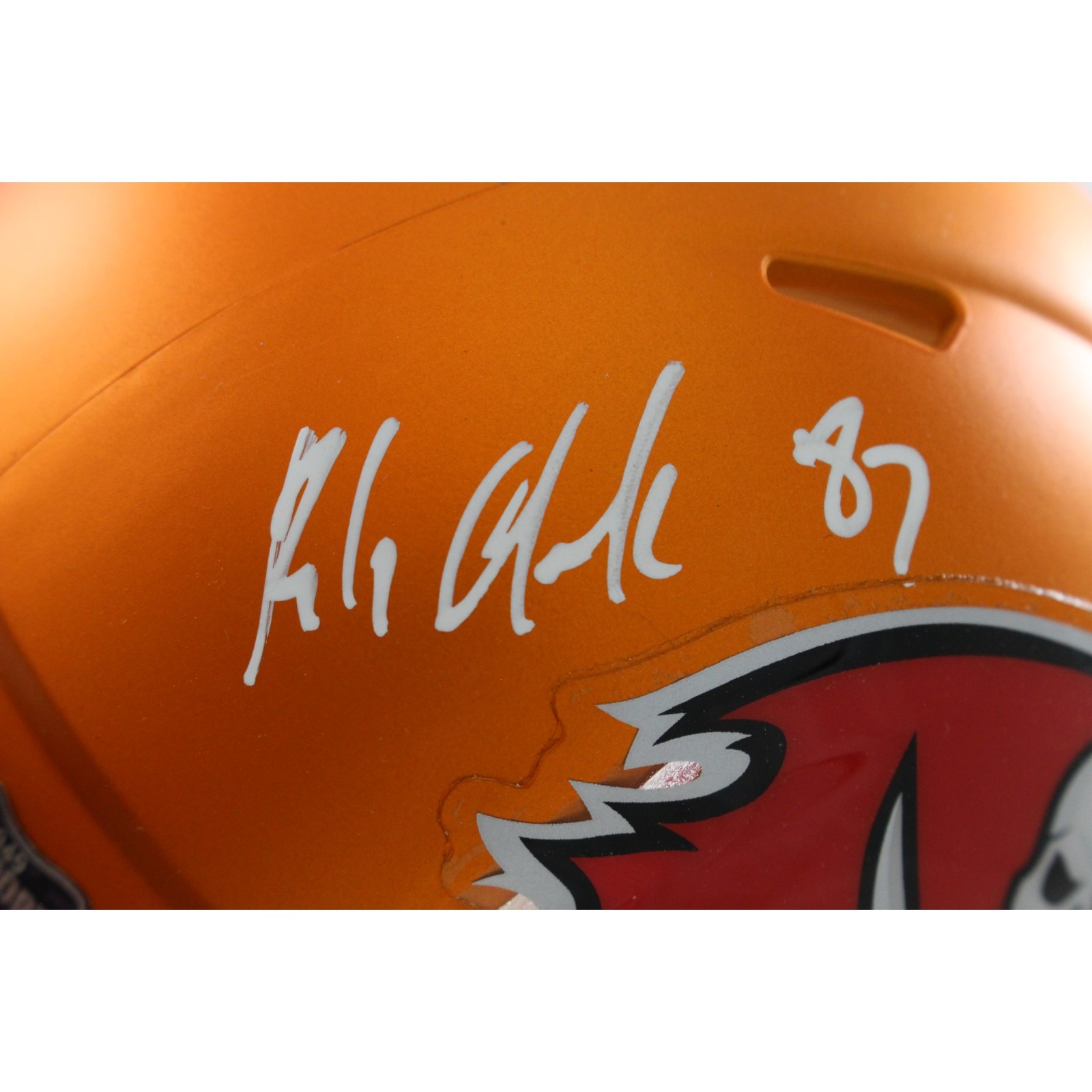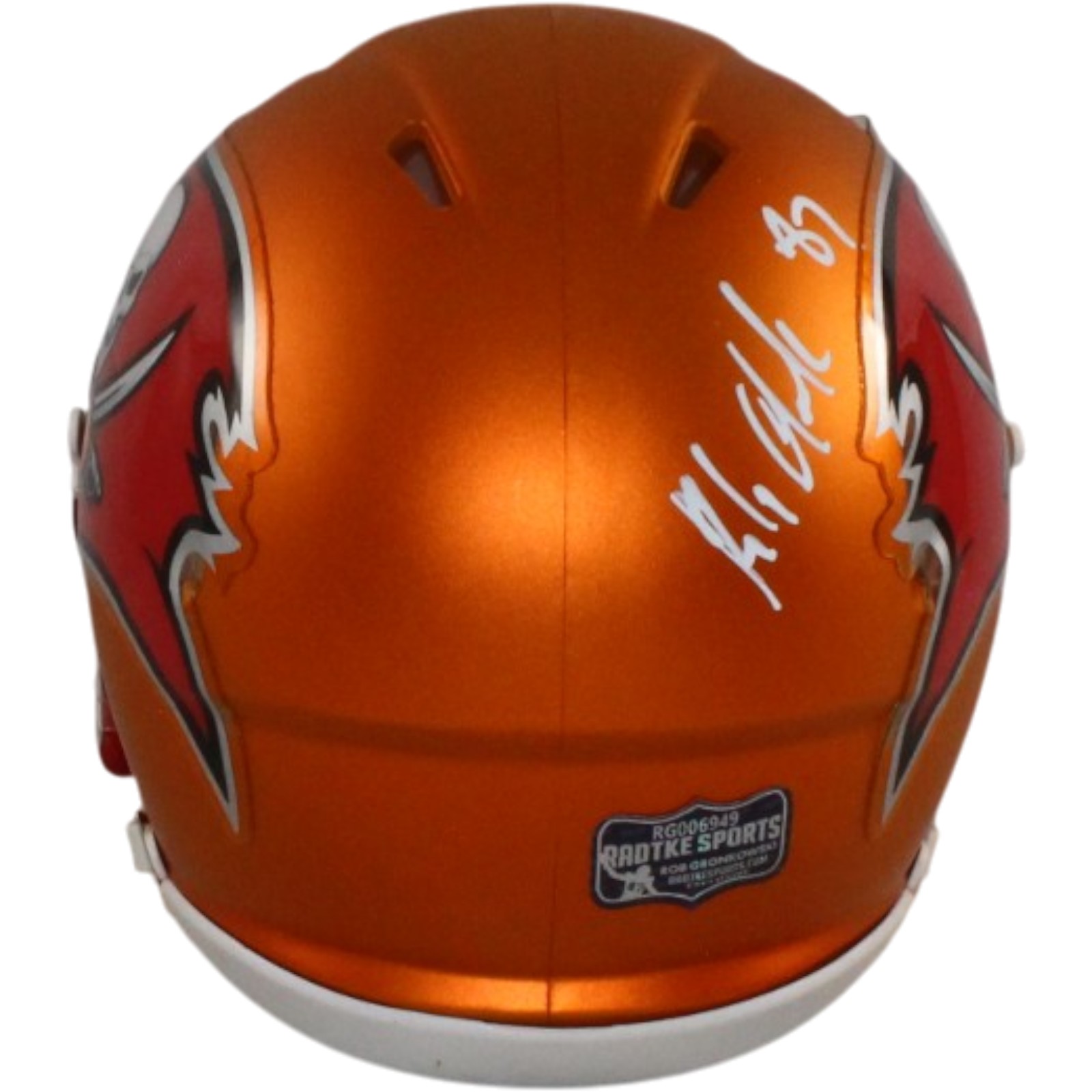 The number in the listing title is just an inventory sku for our records and is not the authentication number. The item pictured is a stock photo. There are multiple quanities of this item. Each of these items is unique because they are individually hand-signed. While the photographs accurately represent the item itself, please note that the signature’s size, exact placement, and strength may differ on the one you receive. This is a Tampa Bay Buccaneers Blaze Mini Helmet that was personally autographed by Rob Gronkowski. Includes a certificate of authenticity / hologram from Radtke Sports (RAD) and Denver Autographs. FREE SHIPPING within the USA on orders over $99!