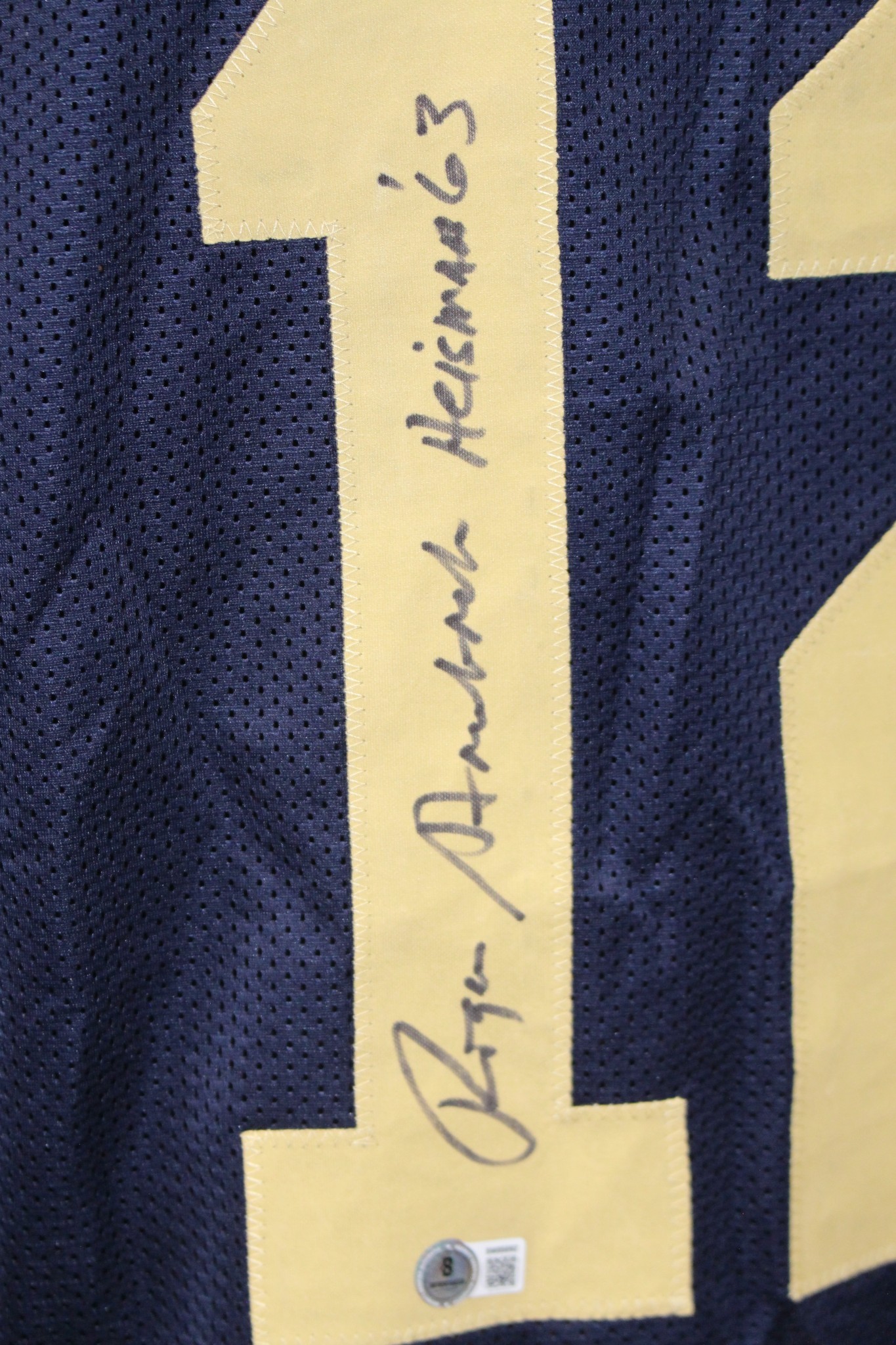 Roger Staubach Autographed College Style XL Blue Jersey Heisman Beckett 55361