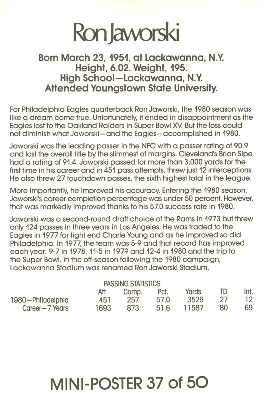Ron Jaworski Philadelphia Eagles Mini Poster 37/50 Marketcom 46199
