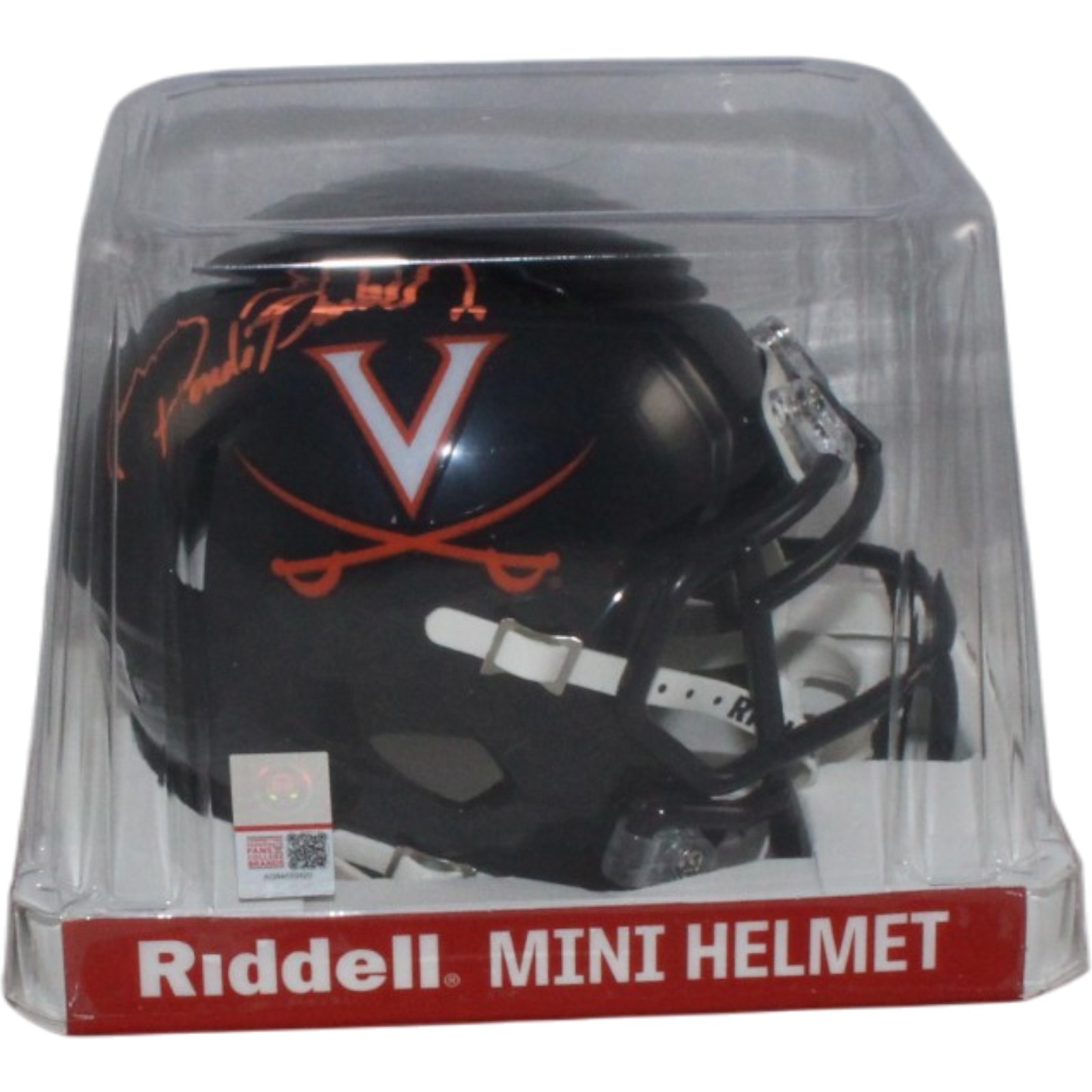Ronde Barber Autographed Virginia Cavaliers Black Mini Helmet Beckett Witness 55447