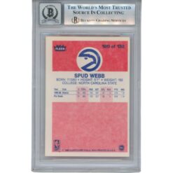 The number in the listing title is just an inventory sku for our records and is not the authentication number. The item pictured is the exact image you will receive, please see photos for condition. This is an Atlanta Hawks 1986 Fleer #120 Slabbed Trading Card with a Grade 10 Autograph that was personally autographed by Spudd Webb. Includes a certificate of authenticity / hologram from Beckett Authentication Services (BAS) and Denver Autographs. FREE SHIPPING within the USA on orders over $99!