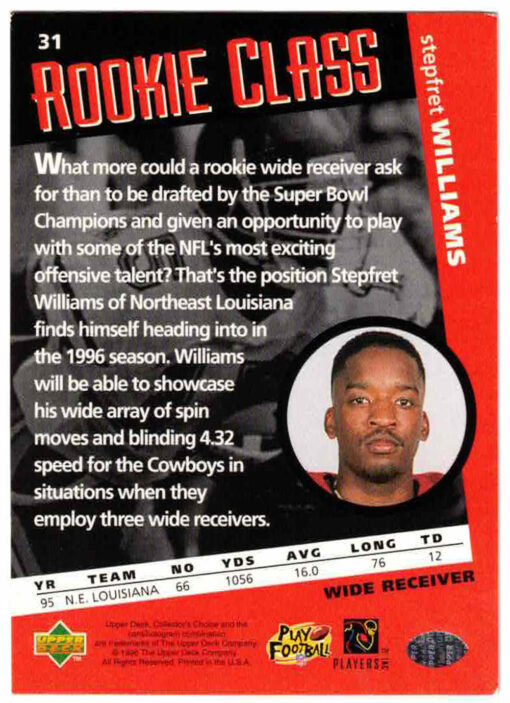Stepfret Williams Autographed 1996 Upper Deck Choice #31 Card 46261