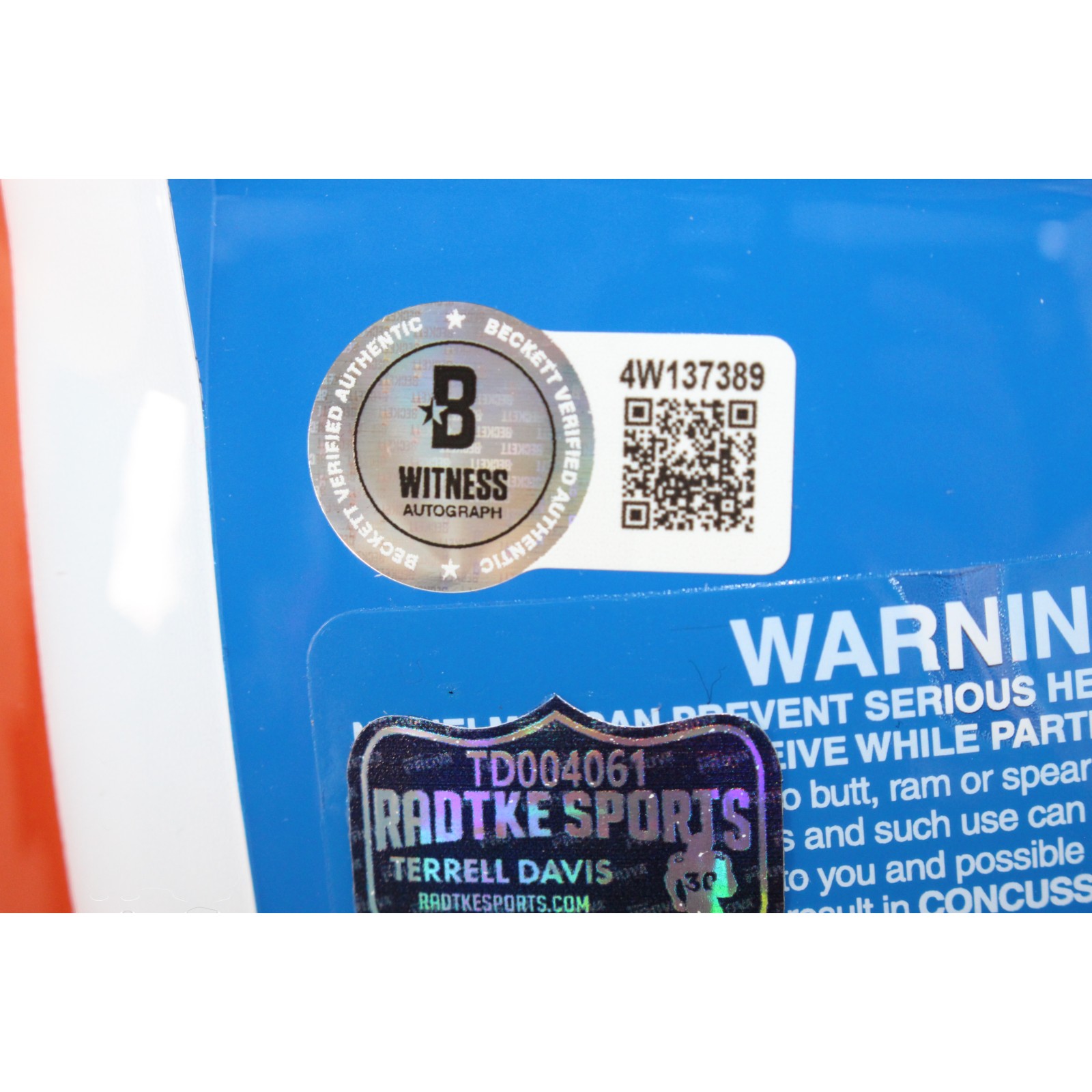 The number in the listing title is just an inventory sku for our records and is not the authentication number. The item pictured is a stock photo unless otherwise noted. There are multiple quanities of this item. Each of these items is unique because they are individually hand-signed. While the photographs accurately represent the item itself, please note that the signature’s size, exact placement, and strength may differ on the one you receive. This is a Denver Broncos Full Size Authentic Throwback 1975-1996 Helmet that was personally autographed by Terrell Davis includes “HOF” inscription. Includes a certificate of authenticity from Beckett Authentication Services (BAS) and Denver Autographs.This is a BAS Witnessed Protection Program item which means a Beckett Authentication Service representative was present when this item was being signed. FREE SHIPPING within the USA on orders over $99!