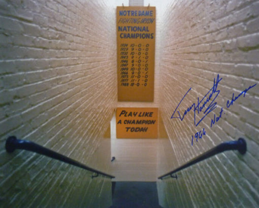 This 16×20 photo was personally hand signed by Terry Hanratty, who was a two time All American and the starting quarterback on the 1966 National Championship team that was 9-0-1 with only a 10-10 tie to Michigan State as there blemish on the season. They defeated Purdue, Oklahoma and USC who were all rated in the top 10. This item includes a certificate of authenticity from Denver Autographs.