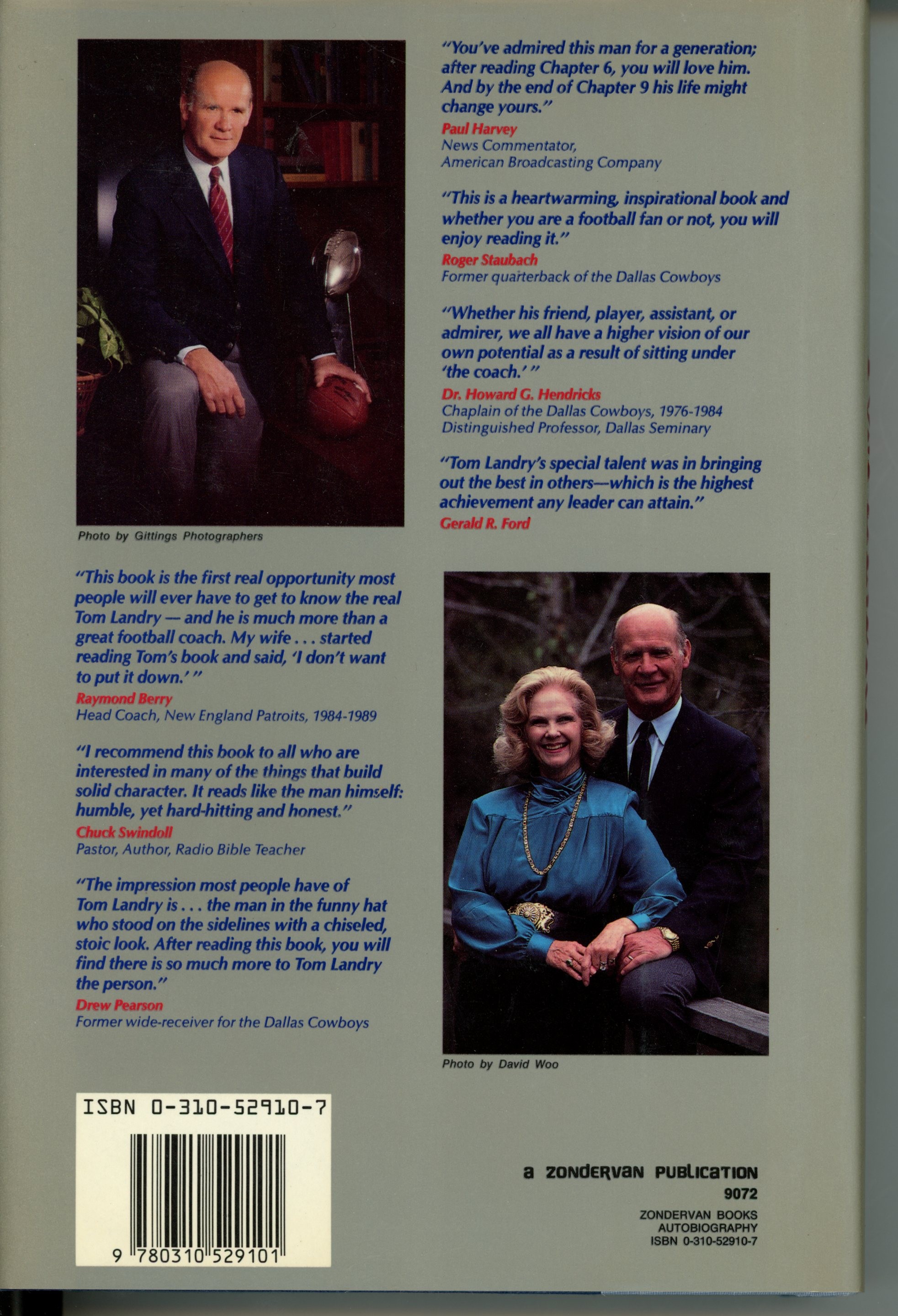 Tom Landry Signed Dallas Cowboys Autobiography Book Personalized Beckett 55775