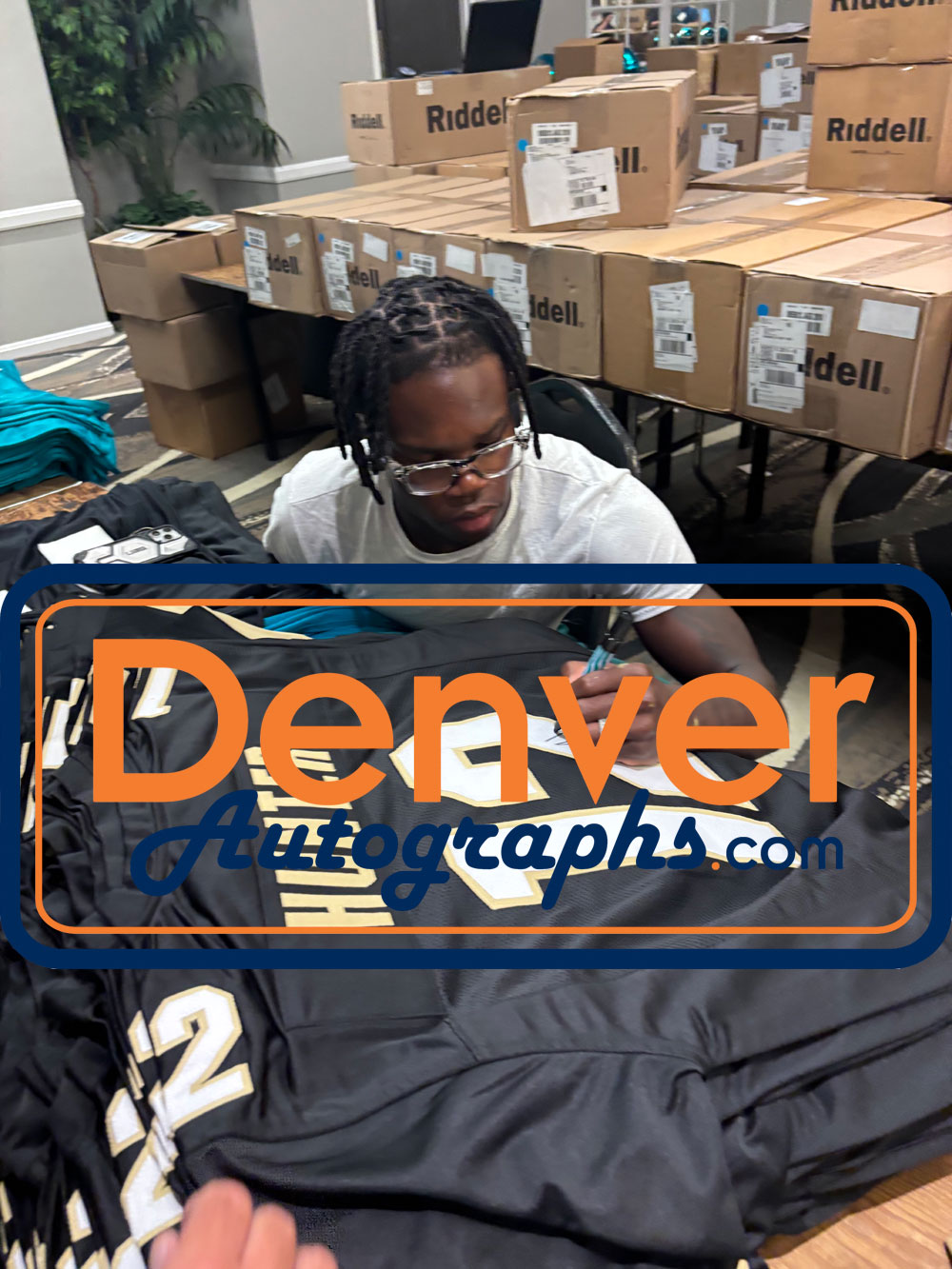 The number in the listing title is just an inventory sku for our records and is not the authentication number. The item pictured is a stock photo. There are multiple quanities of this item. Each of these items is unique because they are individually hand-signed. While the photographs accurately represent the item itself, please note that the signature’s size, exact placement, and strength may differ on the one you receive. This is a College Style Size XL Black Jersey with sewn on numbers that was personally autographed by Travis Hunter. Includes a certificate of authenticity / hologram from Beckett Authentication Services (BAS) and Denver Autographs. This is a BAS Witnessed Protection Program item which means a Beckett Authentication Service representative was present when this item was being signed. FREE SHIPPING within the USA on orders over $99!