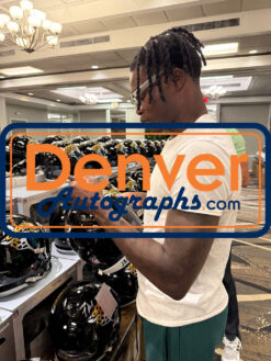 The number in the listing title is just an inventory sku for our records and is not the authentication number. The item pictured is a stock photo unless otherwise noted. This is a Jacksonville Jaguars Full Size Authentic Helmet that was personally autographed by Travis Hunter. Includes a certificate of authenticity from Beckett Authentication Services (BAS) and Denver Autographs.