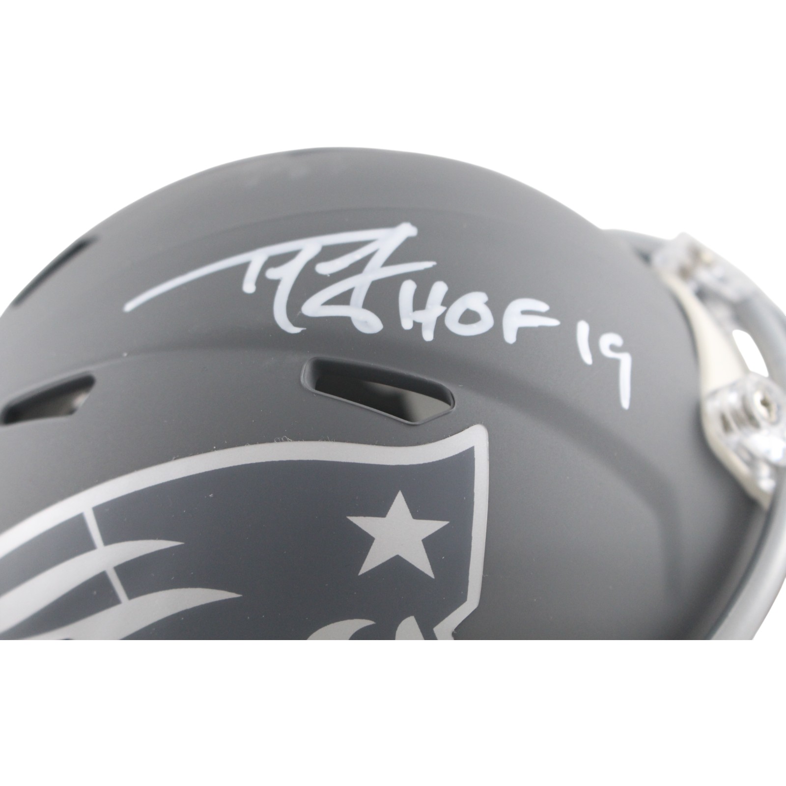 Ty Law Autographed New England Patriots Slate Mini Helmet HOF Beckett 54284