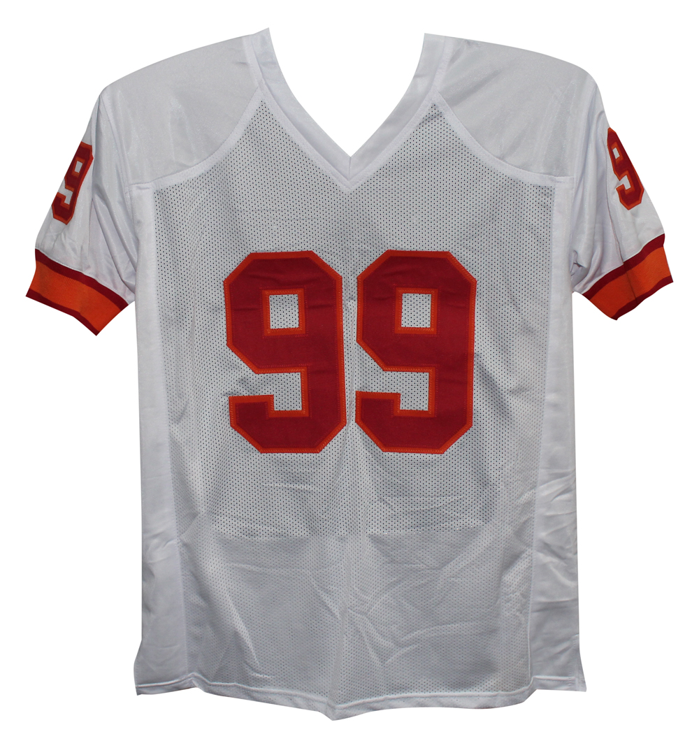 This is a custom pro style white throwback XL jersey with sewn on name and numbers that was personally autographed by Warren Sapp with HOF inscription. Includes a certificate of authenticity from Beckett Authentication Services (BAS) and Denver Autographs.